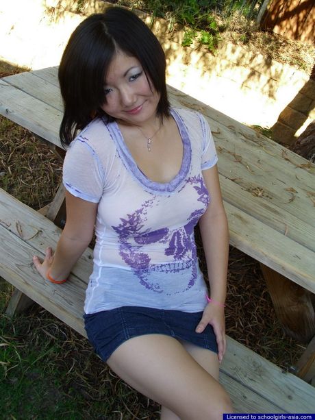 Schoolgirls Asia: Chubby Chiyo flashes her gigantits outdoors and spreads her pussy lips to show some pink